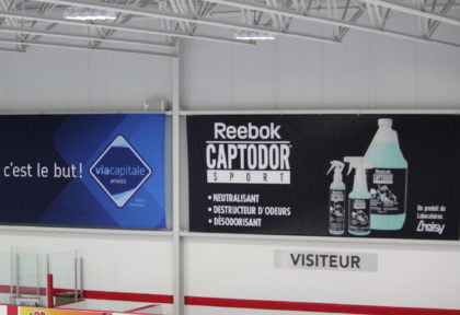 Profitez d’une visibilité professionnelle et classique dans le domaine du hockey sur glace. Plusieurs espaces sont disponibles, soit entre 14 et 20 sur chacune de nos surfaces. Chacune des publicités a un format de 96 x 32 pouces. Un minimum d’investissement qui vous donnera une proximité avec le sport!